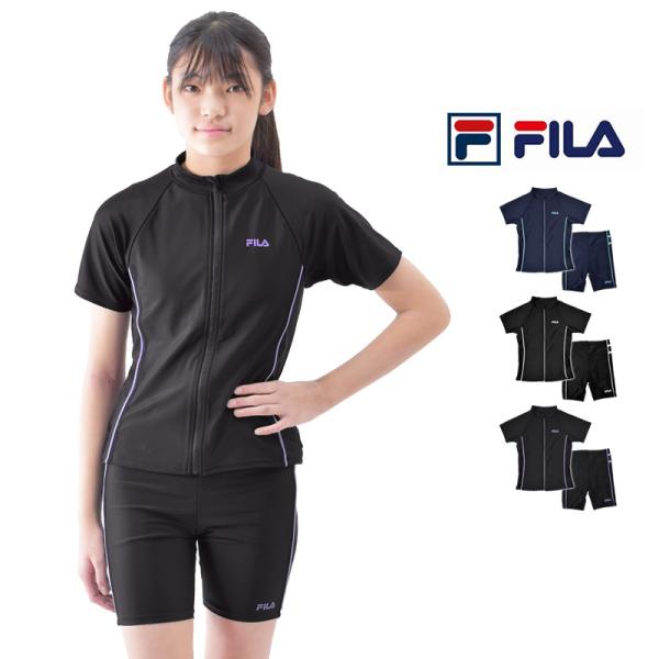 送料無料 スクール水着 半袖 セパレート FILA フィラ 水着 めくれ防止 ラッシュガード 体型カバー 子供 キッズ 女子 女児 水泳 上下セット 115978 メール便