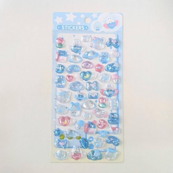 ステッカー 3D立体シール 青いうさぎ 水色 ハート ウサギ リボン ボンボン ドロップ ぷくぷく交換 かわいい 人気 St-23 ビーズクラブ