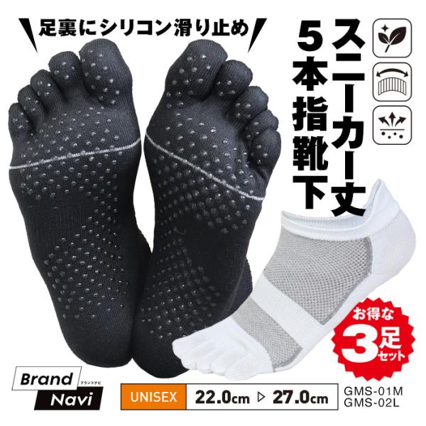 5本指ソックス 靴下 スニーカー丈 お得な3足セット メンズ レディース ジュニア 吸汗速乾 消臭 滑り止め 黒 白 GMOOD ジームード