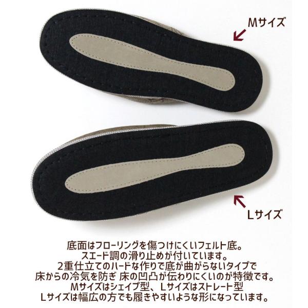 底面は、黒のフェルト素材、ベージュの滑り止め付き