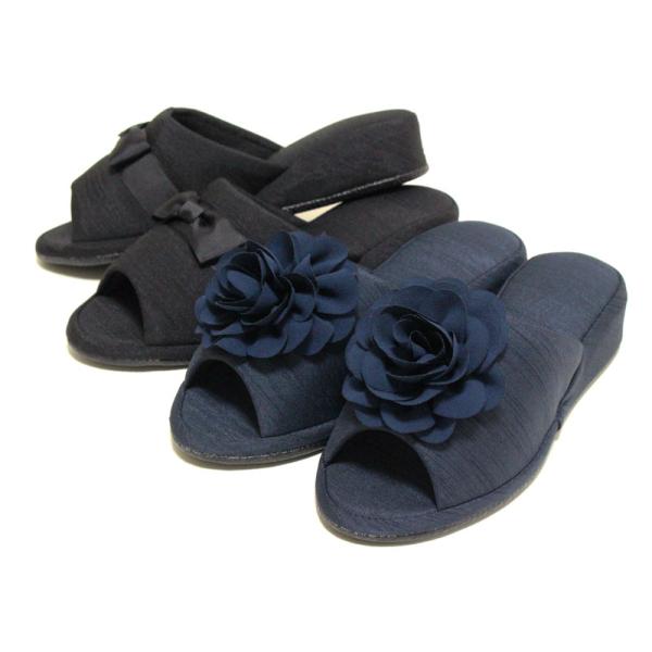 ヒールスリッパ サテン リボン ブーケ 23-24.5cmくらいに対応 ヒール高約4cm 室内 フォーマル 黒 紺 おしゃれ 学校 授業参観 入学式 卒業式 保護者用 ママ PTA