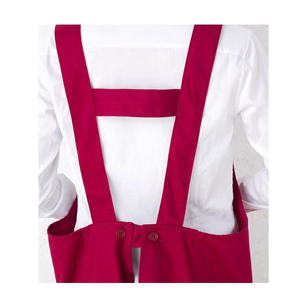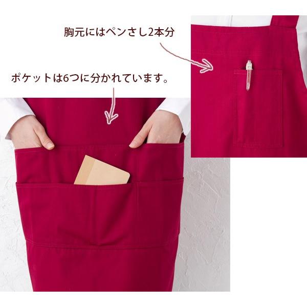 6つに仕切られたポケットや胸元のペンさしなど、機能性も◎。ウエストを紐結びしないのでゆったりと着られて毎日の家事に、また お店などで揃えてお使いいただくのにもおススメです。