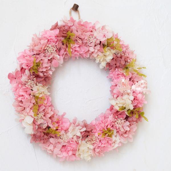 プリザーブドフラワー リース プレゼント ギフト おしゃれ 玄関 プリザ あじさい 枯れない花 妻 誕生日 花 女性 結婚祝い 開店祝い お祝い ピンク 母の日 L