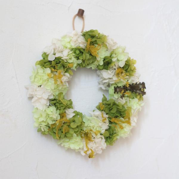 リース 花 プレゼント プリザーブドフラワー おしゃれ 誕生日 玄関 ギフト 結婚祝い 枯れない花 ナチュラル あじさい グリーン 緑 プリザ 母の日 プリザーブド S