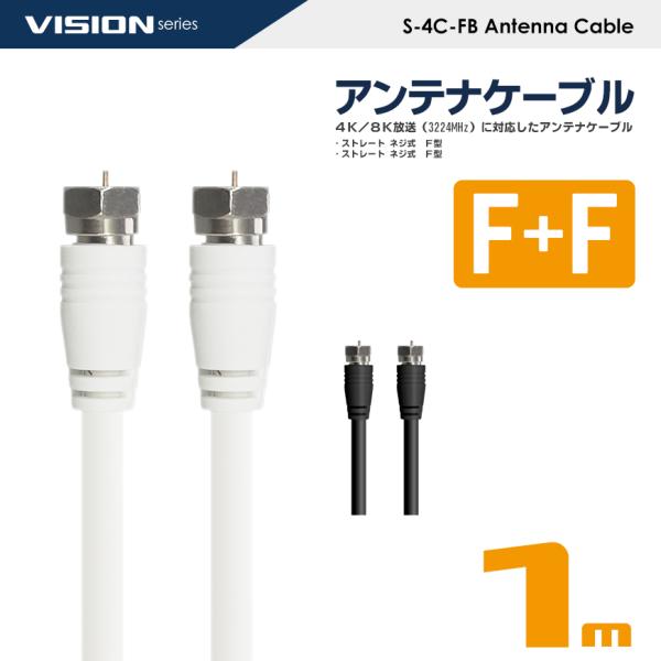 VISION アンテナケーブル 同軸ケーブル 1m 4K8K対応 S-4C-FB 地上デジタル 地デジ BS CS TV テレビ 白/黒 FF-1M 国内検査後 パッケージング