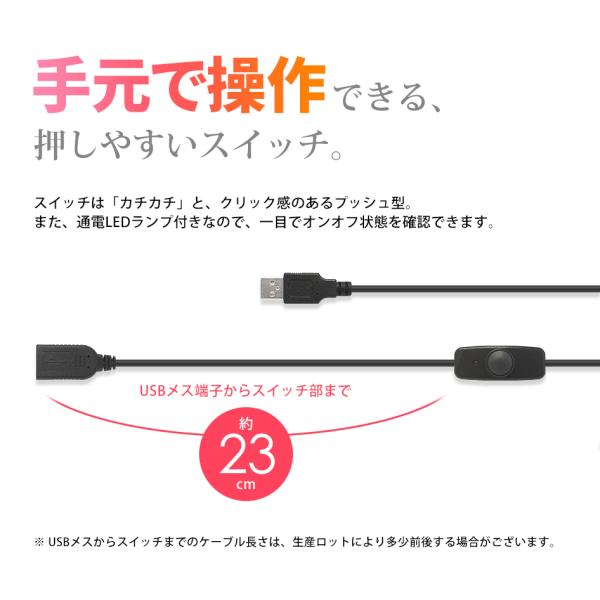 手元でUSB周辺機器のON/OFF操作ができる、スイッチ付きのUSB延長ケーブルです。