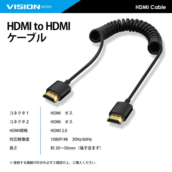 VISION HDMI to HDMI カールコード ケーブル HDMI2.0対応 1080P 4K 60Hz 30〜50cm オス-オス 923074
