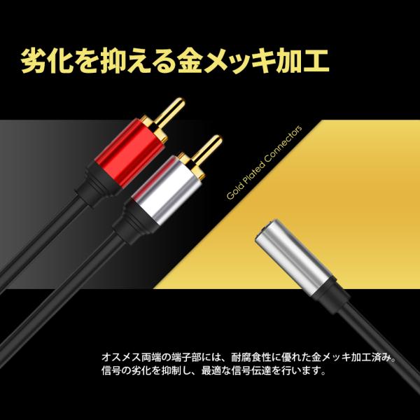 変換ケーブル 3.5mm ステレオミニ メス to 2RACプラグ PC スマホ スピーカー アンプ ミキサー ミニプラグ ジャック アダプター オーディオケーブル 3極 491032