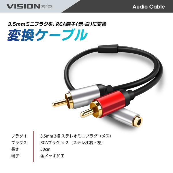 VISION 変換ケーブル 3.5mm ステレオミニ メス to RACプラグ PC スマホ スピーカー アンプ ミニプラグ ジャック アダプタ オーディオ 3極 491032