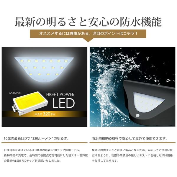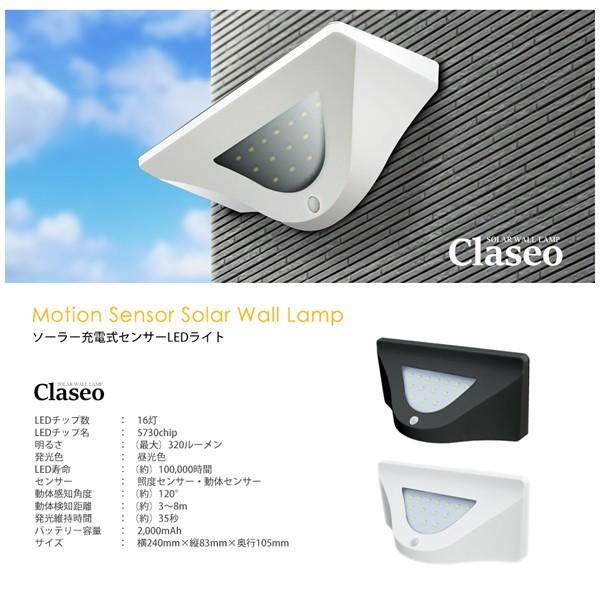 ソーラーライト LED センサーライト ガーデンライト 屋外 LED 16灯 人感センサー 防水 IP65 ウォールランプ 玄関 照明 防犯 クラシオ