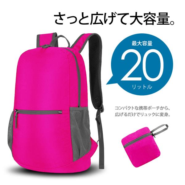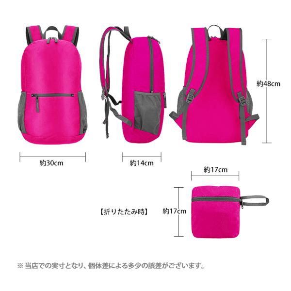 ・ちょっとしたお出かけのお買い物や、旅行時の予備バッグ、登山やキャンプなどのアウトドアシーン、防災グッズなどとしておすすめな折りたたみができるリュックサックです