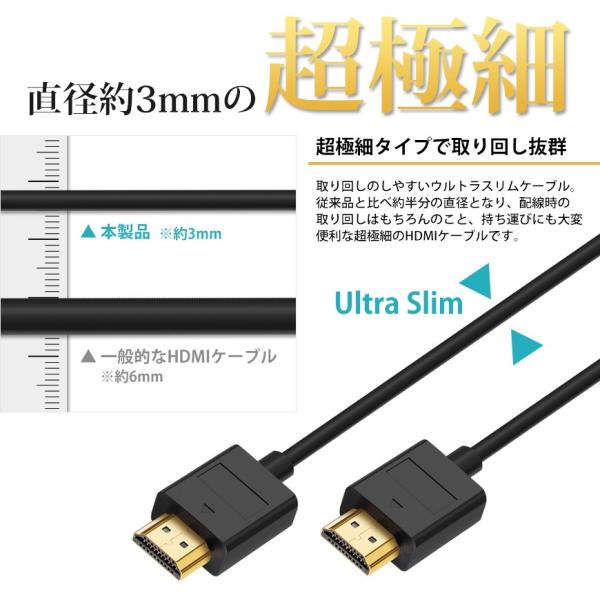 HDMIケーブル ウルトラスリム 1.5m 超極細 Ver.2.0
