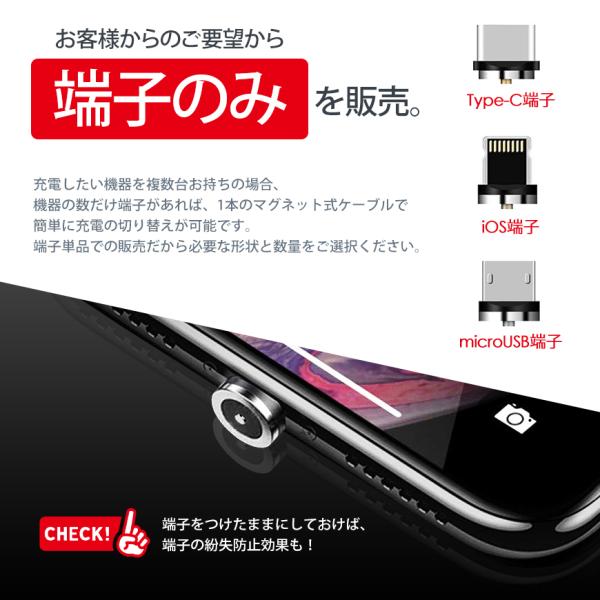 端子 のみ Magble540/L字型 マグネット ケーブル 当店製品専用 TYPE-C micro USB iPhone 充電 アルミニウム合金 磁石