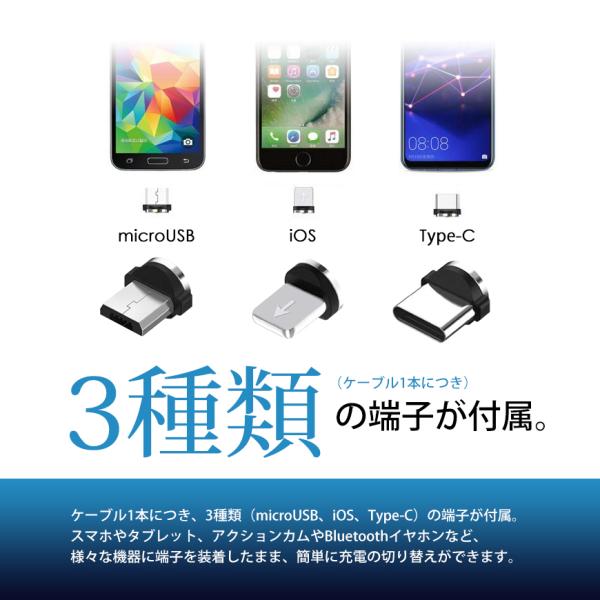 ・マグネット式 コネクタ3タイプ(iOS/micro/Type-C) × 2セット