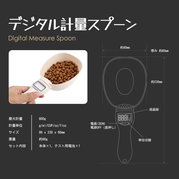 デジタル計量スプーン ドッグフードフード キャットフード スケール 計量カップ 健康管理 犬 猫 イヌ ネコ 餌 はかり エサ 測定 スケール 取り外し可能