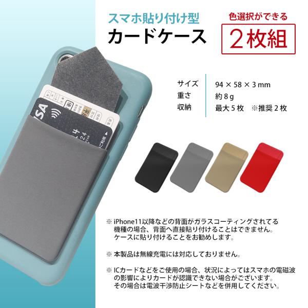 スマホ カードケース 2枚セット 貼り付け iPhone/androidに カードホルダー クレジットカード ICカード Suica 定期 免許証 名刺 スマートフォン 色選択