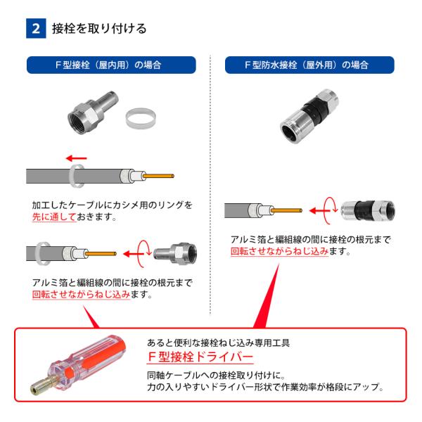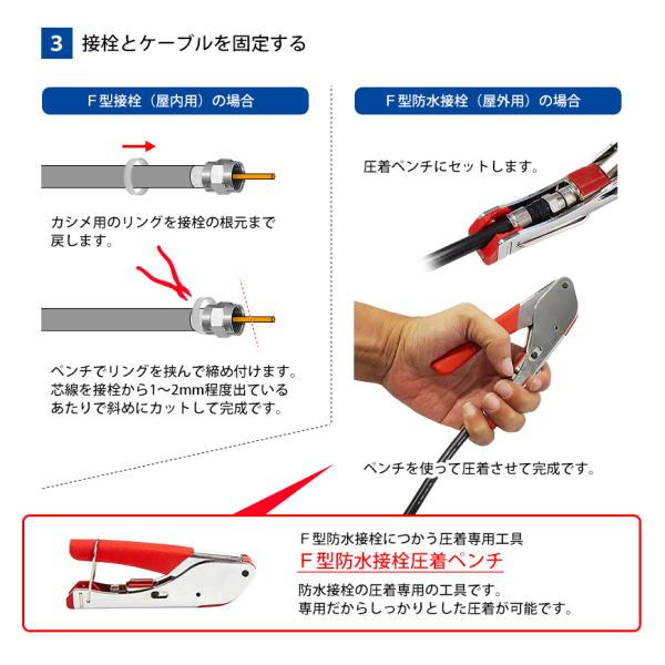※同軸ケーブルとの圧縮には、防水接栓用の圧縮工具が必要となります。
