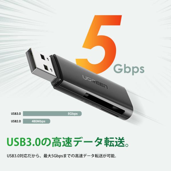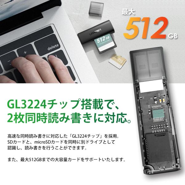 UGREEN カードリーダー スリム SD TF 2スロット同時読み書き USB3.0 高速転送 SDHC MicroSD SDXC Windows MacOS 対応 60722