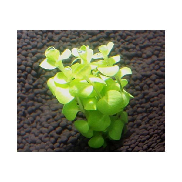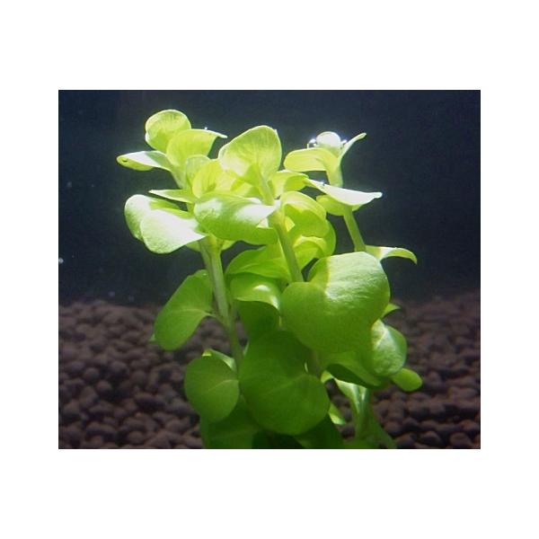 イエローリシマキアはリシマキアの改良版の水草です。別名に「ゴールデンリシマキア」や「ゴールドコインウォーターチェーン」があります。1988年にリシマキアの変種として紹介され,固定化されました。和名をキンカソウ(金貨草)といいます。 水草の中では珍しい色彩であるライム・イエローに全体が染まる水草です。原産地の気候から低水温、多くの光量、二酸化炭素(Co2)の添加が育成の良い条件となります。明るい色彩をうまく生かすためには、似たような色彩の水草とは隣り合わせないようにし、やや濃い緑色の水草などと隣り合うようなレイアウトの使い方にすることでアクセントとして使うことができます。