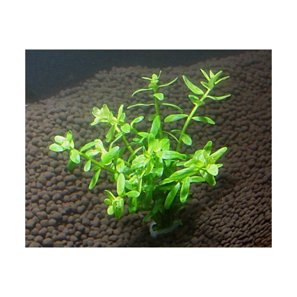 ポピュラーな熱帯魚用の有茎水草です。ライトグリーン系の水草です。ロタラの中では最も育てやすい部類に属します。綺麗に這った姿にするには二酸化炭素の添加が有効です。とても丈夫な水草で幅広い環境に耐える丈大な性質をもちます。成長が速く、水質がまだ安定していないセット直後の水槽に植えることで余分な水中の養分などを吸収して水質を安定化させる効果もあります。根張りもよくグッピー水槽などにもお勧めです。稚魚の隠れ家にもなります。レイアウトは中景から後景に用いましょう。斜めに伸びる習性があります。