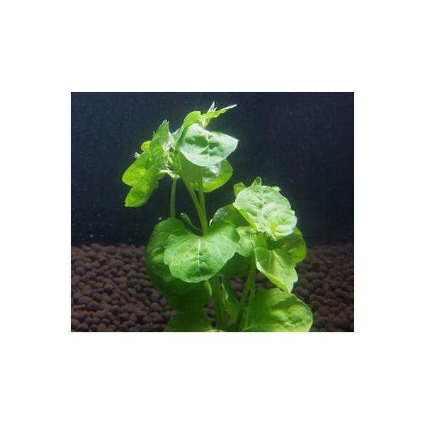 カーナミンは丸いハート形の葉を対生させるライトグリーンの有茎水草で、昔から熱帯魚水槽に用いられてきた水草です。葉をちぎるとミントの香りがする水草です。軟水中では適応範囲が比較的広く、弱酸性〜弱アルカリ性、水温30℃でも育てることができます。 栽培は簡単(初心者OK)で底床添加肥料を加えた底床に挿すだけで、二酸化炭素(Co2)を添加しなくても育成することができます。 多くの水草の中でカーナミンのような葉形を有するものは少なく、ハート型の集合した葉の様子は実に美しいです。 低光量で時間をかけ、ゆるやかに成長させたカーナミンは美しく、また水槽内の景観を短期間に損ねることもなく、扱いやすい長所を持ちます。 このようにして育てたカーナミンは、アクアリウムレイアウトには貴重です。10〜50本群植させると目立って美しいでしょう。 カーナミンは適応範囲が広いことや形態の美しさから、レイアウトに使える場面が多い水草といえます。
