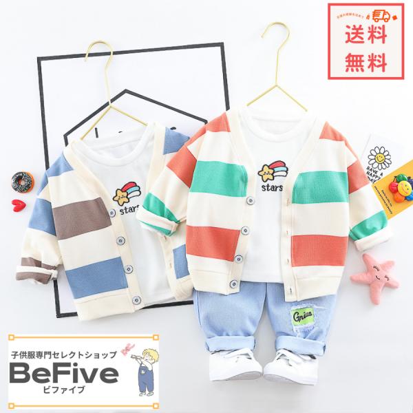 3点セット ボーダー柄 カーディガン ジーパン 長袖Tシャツ キッズベビー服 セットアップ 上下セット 韓国子供服 男の子80cm 90cm 100cm 110cm