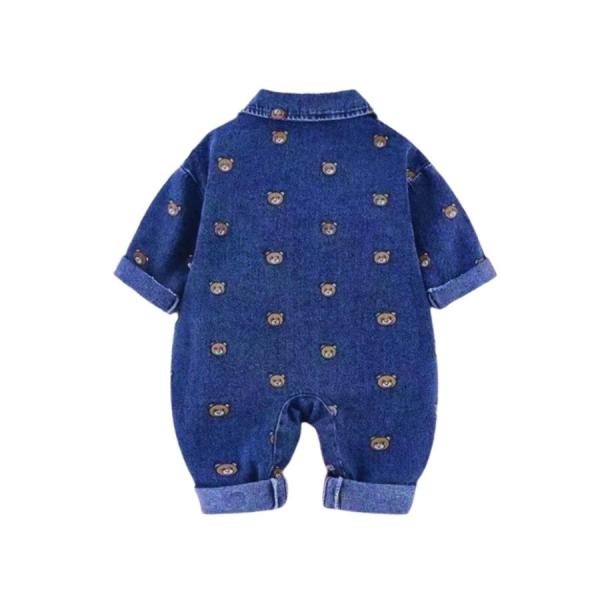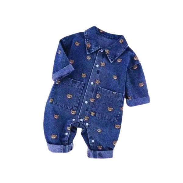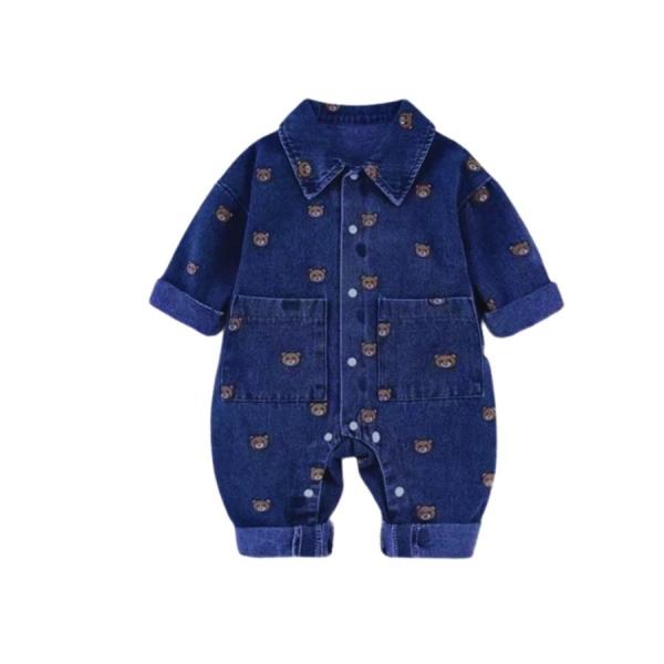 やわらか素材 くま柄 ロンパース デニム つなぎ 韓国子供服 おしゃれ 乳幼児 キッズ ベビー服 60cm 70cm 80cm 90cm 100cm