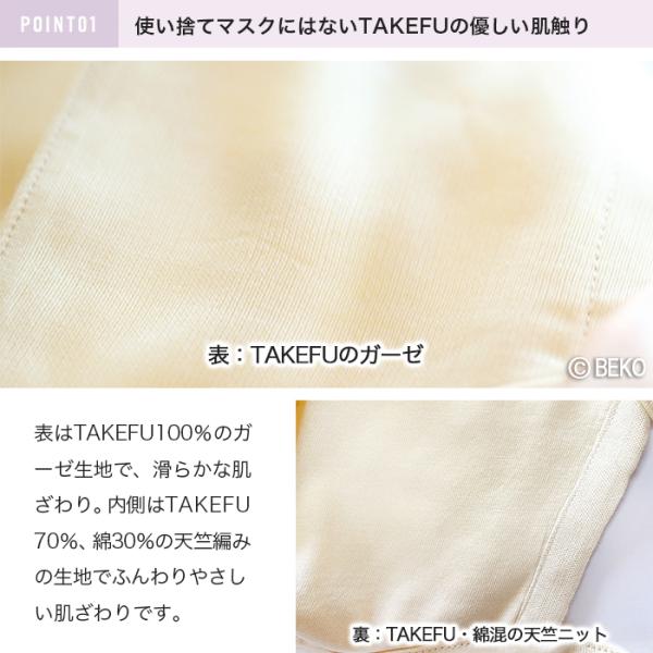 TAKEFU 竹布 マスク ガーゼ うるおいマスク 1枚 メール便使用 抗菌性 大人用 ガーゼマスク 布マスク ナファ生活研究所