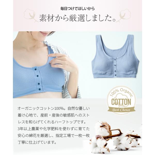 ・100%オーガニックコットンを使用した授乳ハーフトップ