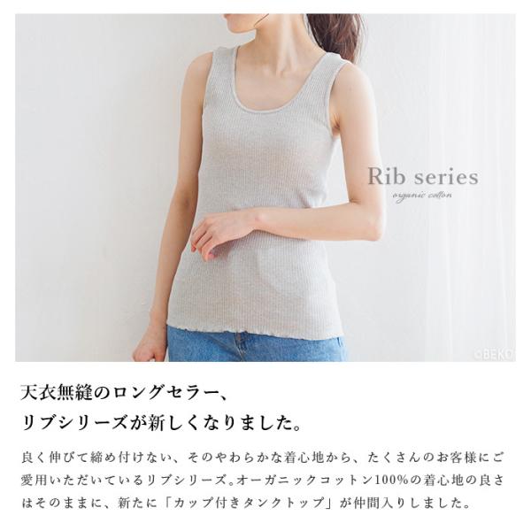 天衣無縫 リブ カップ付き タンクトップ、メール便で送料無料 オーガニックコットン