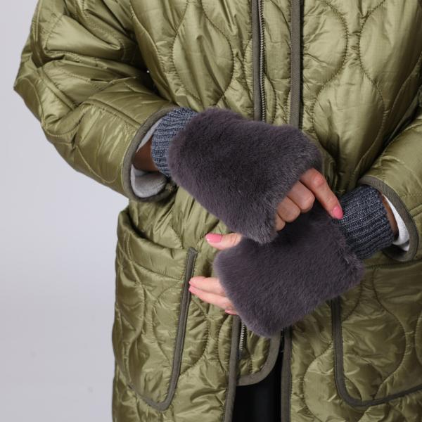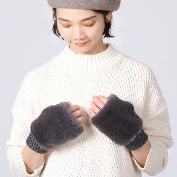 ファーとニットのハンドウォーマー アームウォーマー アームカバー 手袋 あったかグッズ 秋冬 フェイクファー 防寒 スマホが触れる プレゼント