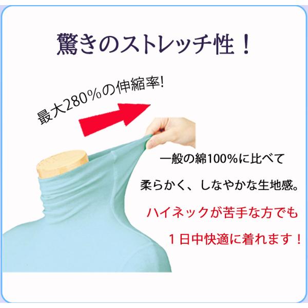 天使の綿シフォン 長袖ハイネックカットソー 1重袖