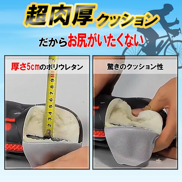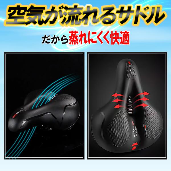お尻が痛くなりにくい、超肉厚の高弾力クッションを採用した自転車サドルです。