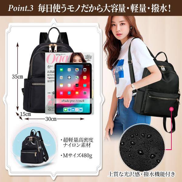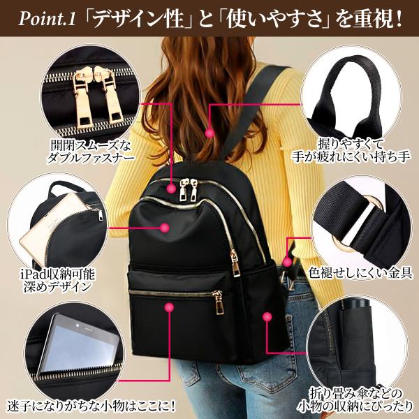 お洒落で大人可愛い機能性抜群のレディースバックパック。