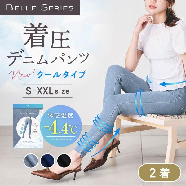 【新発売】 着圧デニム クールタイプ 2着 冷感 着圧レギンス 冷感着圧デニム デニムクール 着圧タイツ ダイエット むくみ 強着圧 伸縮性 夏用 ベルシリーズ
