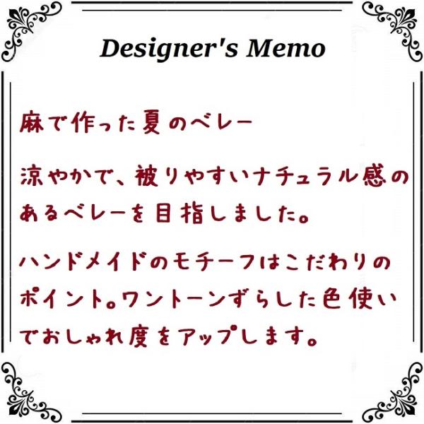 【素材及び混率】本体:麻100%/モチーフ部分:麻 キュプラ その他