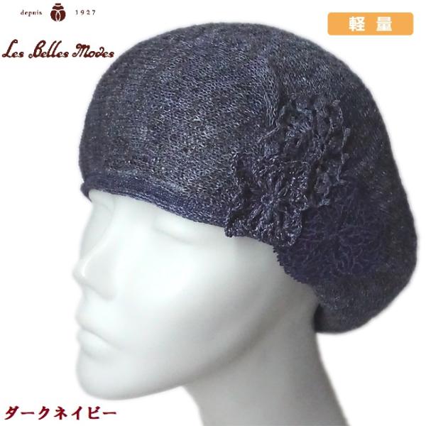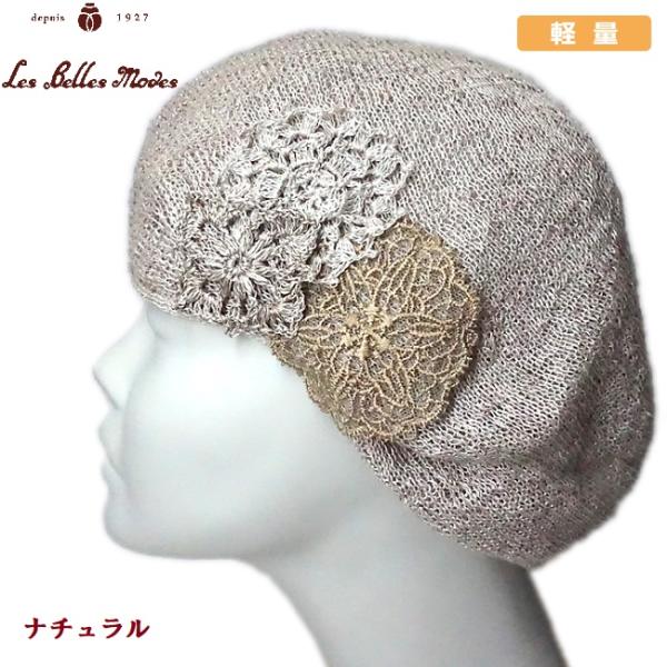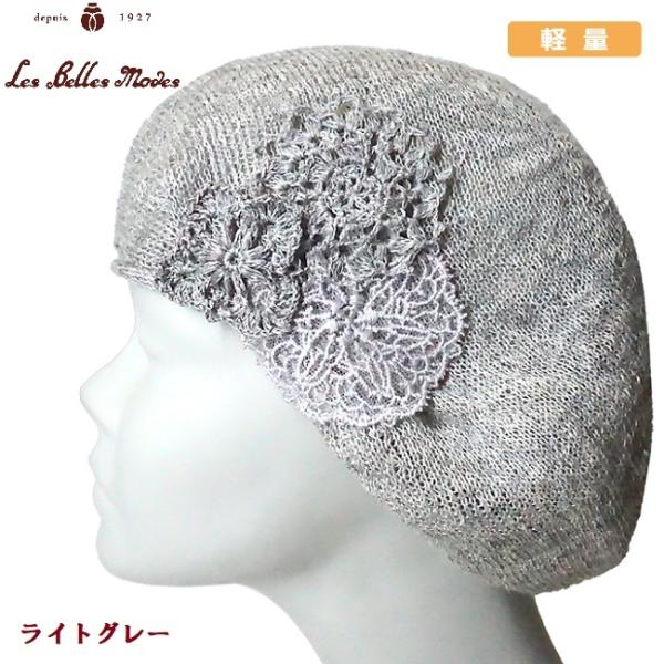 レディース ベレー帽 麻 日本製 軽い 蒸れない ハット 帽子 春夏 (ライトグレー) 17-166 レースモチーフが美しいリネンベレー ベルモード ポイント利用