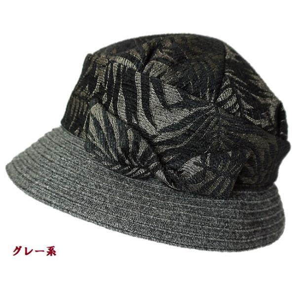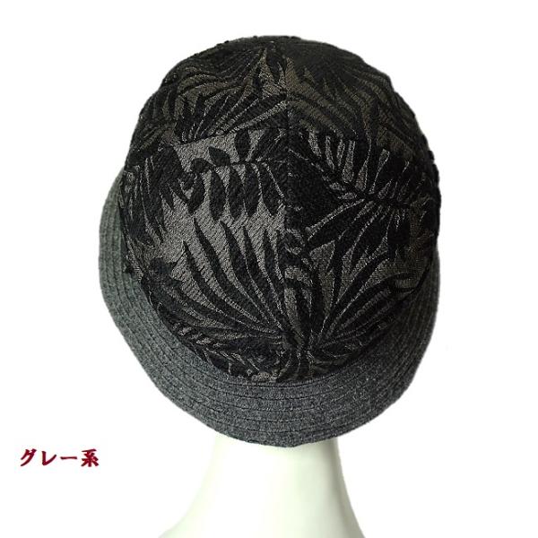 レディース 帽子 ハット ボタニカル柄 日本製 洗える たためる 秋冬(グレー系)06-92 モールジャガード×ウールブレードコンビクローシュ ベルモード