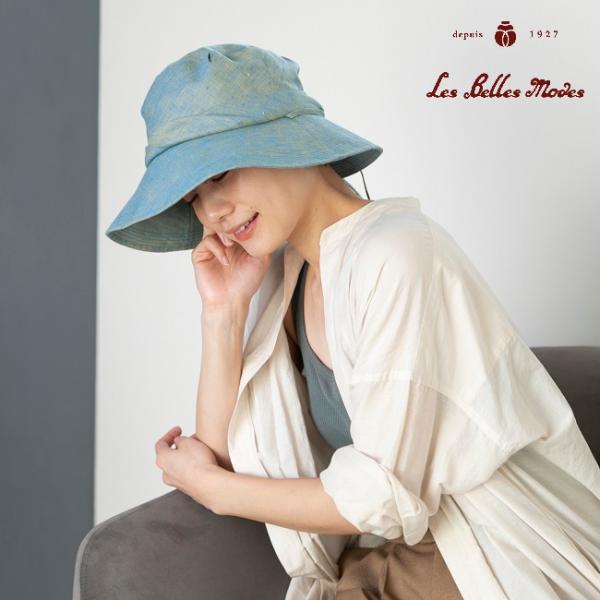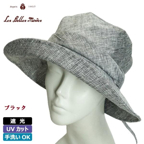 レディース UV帽子 遮光 日本製 蒸れにくい 洗える ハット 春夏 (ブラック/ナチュラル/サックス) 24-436 フレンチリネンの軽やかクローシュ ベルモード