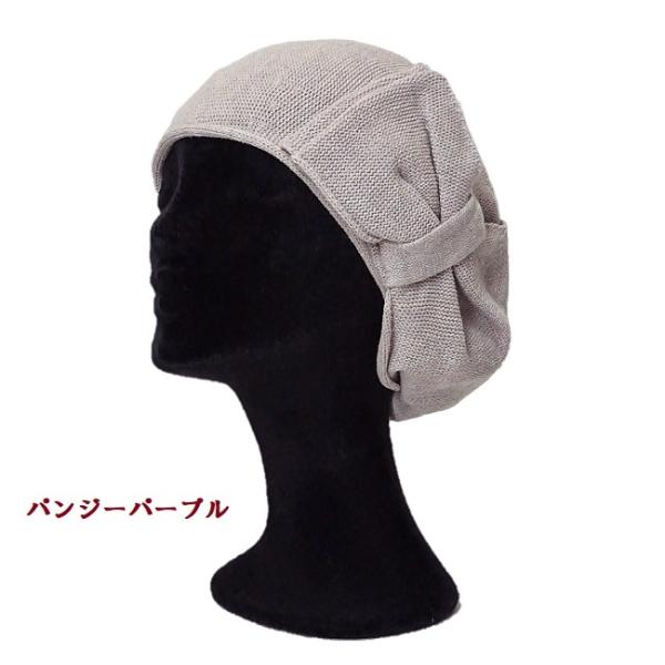 レディース ベレー帽 オーガニック 綿 日本製 ニット ハット 帽子 通年(パンジーパープル)17-213 ボタニカルダイ リボンベレー ベルモード
