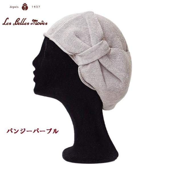 レディース ベレー帽 オーガニック 綿 日本製 ニット ハット 帽子 通年(パンジーパープル)17-213 ボタニカルダイ リボンベレー ベルモード