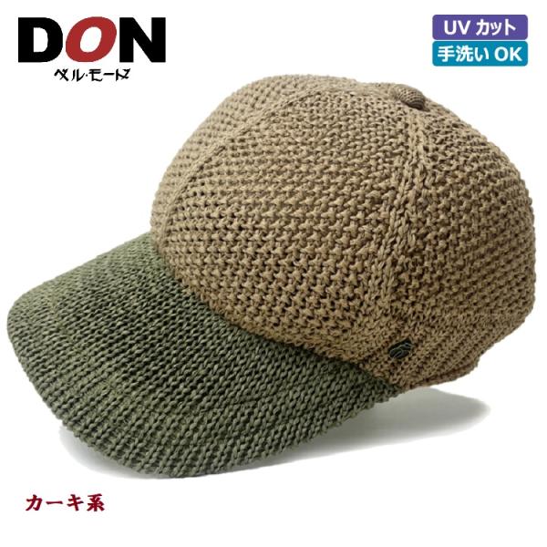 メンズ 帽子 キャップ 麻 日本製 ハット 春夏(ナチュラル/ブルーグリーン/ネイビー)24-420 リネンの手編みニットとキャンバスのコンピキャップ DONベルモード