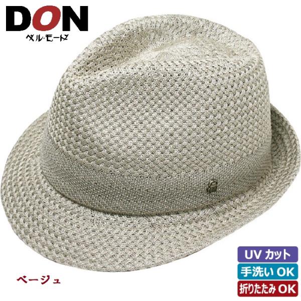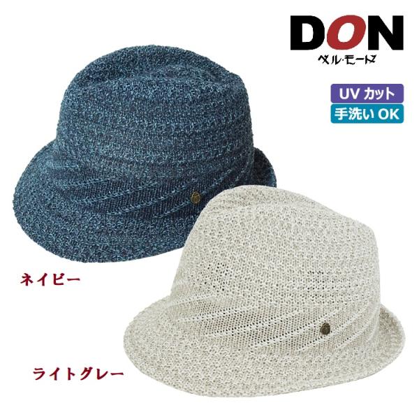 メンズ 中折れ帽子 L/Mあり UVカット 通年(ベージュ/ネイビー/チャコール/カーキ)07-290 ウォッシャブルシルク使用・石目編み中折れハット ドン・ベルモード