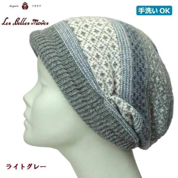 レディース ニット帽 ウール 日本製 保温 ワッチ ハット 帽子 秋冬 (ライトグレー/モカレッド) 07-638 タスマニアウールノルディックフード ベルモード