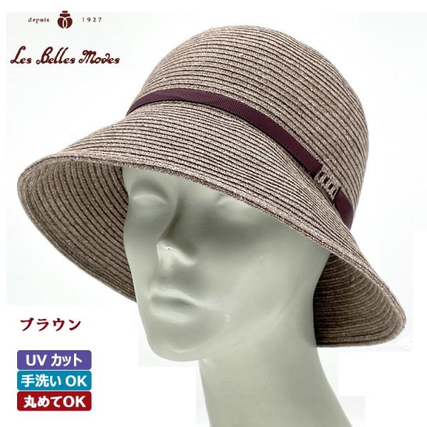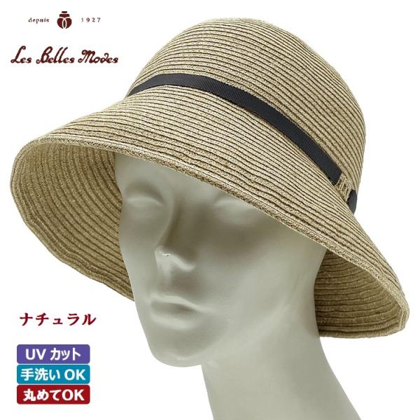 ハット クローシュ 日本製 UVカット 麻混 綿混 洗える 帽子 レディース 春夏 (3カラー展開) 13-341 リネンブレードクローシュ・グログランリボン巻 ベルモード