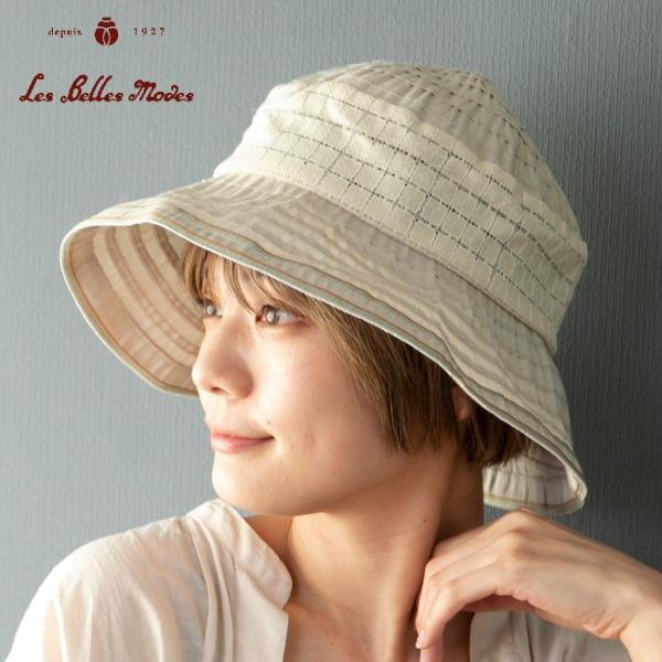 レディース UV帽子 日本製 蒸れにくい 洗える たためる ハット 春夏(ベージュ/ネイビー/ブラック)06-88 透かしブロックと麻混テープブレード ベルモード