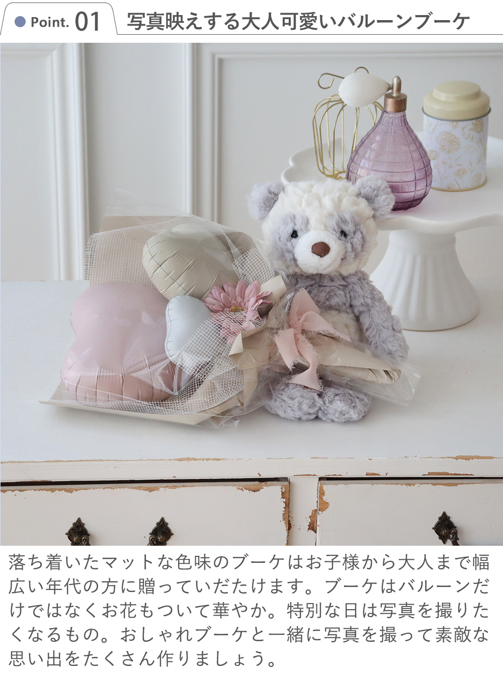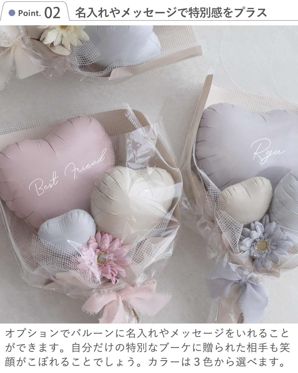※アレンジに使用するバルーンカラーや、リボン等の花材が変更になる場合がございます。予めご了承くださいませ。