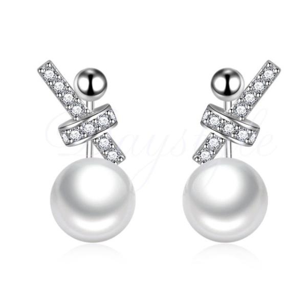 ジルコンをちりばめた新作パールピアス パール 上品 キラキラ