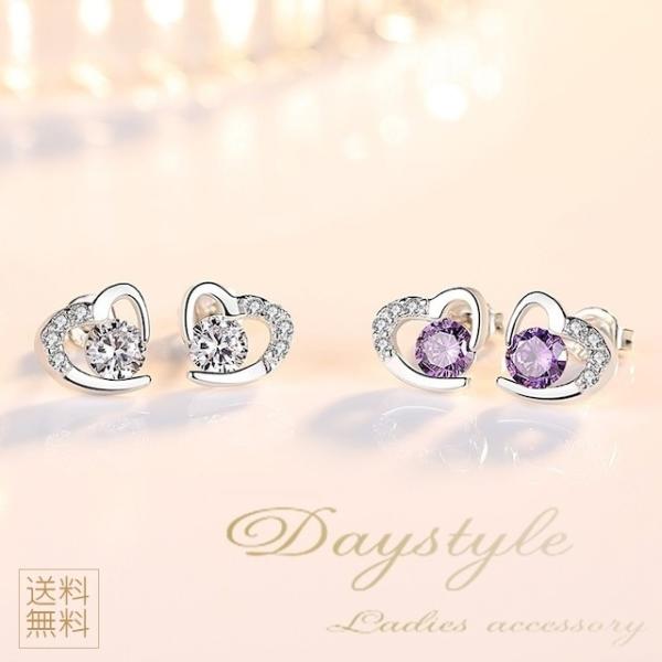 ハート キラキラ ジルコニア ピアス エレガント S925 上品 高品質