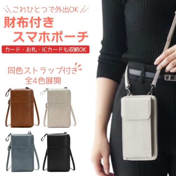 スマホショルダー 財布 スマホポーチ 財布付き ミニショルダー ミニポーチ iPhone 17 16 レディース カード収納 シンプル レザー 小型